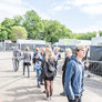 Vagtskiftet ved Marselisborg Slot skærtorsdag kl. 12 tiltrak mange fremmødte, mens politiets indsatsleder undervejs tog sig tid til at besvare spørgsmål fra en nysgerrig dreng.