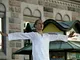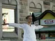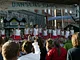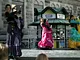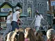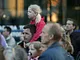Vagtskiftet ved Marselisborg Slot skærtorsdag kl. 12 tiltrak mange fremmødte, mens politiets indsatsleder undervejs tog sig tid til at besvare spørgsmål fra en nysgerrig dreng.