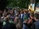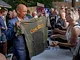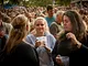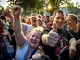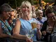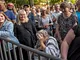 Vagtskiftet ved Marselisborg Slot skærtorsdag kl. 12 tiltrak mange fremmødte, mens politiets indsatsleder undervejs tog sig tid til at besvare spørgsmål fra en nysgerrig dreng.
