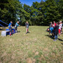 Vagtskiftet ved Marselisborg Slot skærtorsdag kl. 12 tiltrak mange fremmødte, mens politiets indsatsleder undervejs tog sig tid til at besvare spørgsmål fra en nysgerrig dreng.