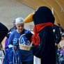 Vagtskiftet ved Marselisborg Slot skærtorsdag kl. 12 tiltrak mange fremmødte, mens politiets indsatsleder undervejs tog sig tid til at besvare spørgsmål fra en nysgerrig dreng.