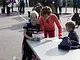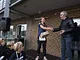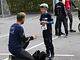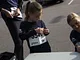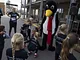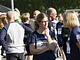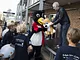 Vagtskiftet ved Marselisborg Slot skærtorsdag kl. 12 tiltrak mange fremmødte, mens politiets indsatsleder undervejs tog sig tid til at besvare spørgsmål fra en nysgerrig dreng.