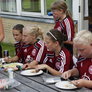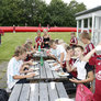 Vagtskiftet ved Marselisborg Slot skærtorsdag kl. 12 tiltrak mange fremmødte, mens politiets indsatsleder undervejs tog sig tid til at besvare spørgsmål fra en nysgerrig dreng.