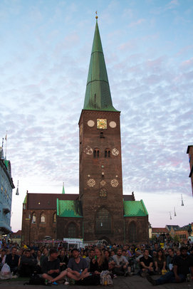 DBU VM Tour havde fredag aften sat storskærmen op på Store Torv