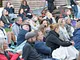 Vagtskiftet ved Marselisborg Slot skærtorsdag kl. 12 tiltrak mange fremmødte, mens politiets indsatsleder undervejs tog sig tid til at besvare spørgsmål fra en nysgerrig dreng.