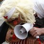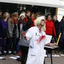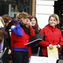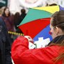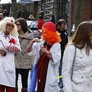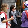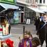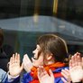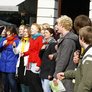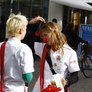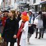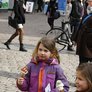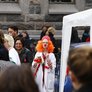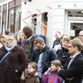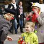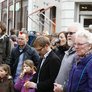 Vagtskiftet ved Marselisborg Slot skærtorsdag kl. 12 tiltrak mange fremmødte, mens politiets indsatsleder undervejs tog sig tid til at besvare spørgsmål fra en nysgerrig dreng.