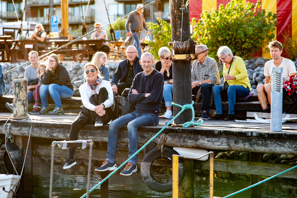 Lav sol over Aarhus og høj stemning i Træskibshavnen. Sådan er det nemlig, når de Splittergale giver koncert. Denne gang på en flydende scene for "ikke at smitte med psykisk sygdom og Corona"