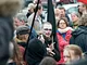Vagtskiftet ved Marselisborg Slot skærtorsdag kl. 12 tiltrak mange fremmødte, mens politiets indsatsleder undervejs tog sig tid til at besvare spørgsmål fra en nysgerrig dreng.