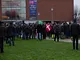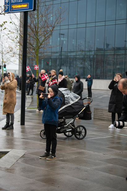 Vagtskiftet ved Marselisborg Slot skærtorsdag kl. 12 tiltrak mange fremmødte, mens politiets indsatsleder undervejs tog sig tid til at besvare spørgsmål fra en nysgerrig dreng.