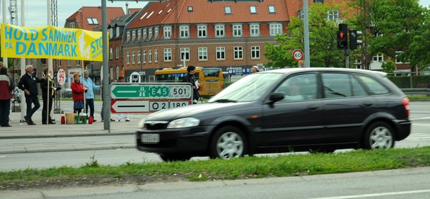 Fagbevægelsen var tidligt oppe og klar med bannere og skilte, da morgentrafikken kom forbi Viby Torv.