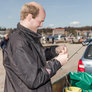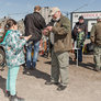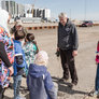 Vagtskiftet ved Marselisborg Slot skærtorsdag kl. 12 tiltrak mange fremmødte, mens politiets indsatsleder undervejs tog sig tid til at besvare spørgsmål fra en nysgerrig dreng.