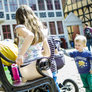 Det gode sommervejr havde lokket familier og turister i Den Gamle By.