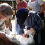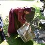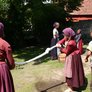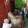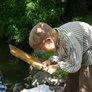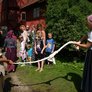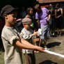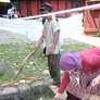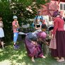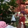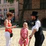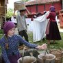 27.07.11 Den Gamle By i Aarhus, bød på oplevelser for børn med En dag som barn. Tiden blev skruet tilbage til 1864, hvor børnene vaskede, skrubede og skurede lagner. Der blev slidt og slæbt under overvågning og oplæring af Frøken Skrap. "stå ikke der og lav ingenting !" Dog med et glimt i øjet til spænding og morskab for børnene
