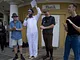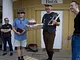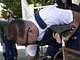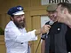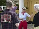 Vagtskiftet ved Marselisborg Slot skærtorsdag kl. 12 tiltrak mange fremmødte, mens politiets indsatsleder undervejs tog sig tid til at besvare spørgsmål fra en nysgerrig dreng.