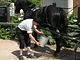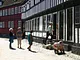 Vagtskiftet ved Marselisborg Slot skærtorsdag kl. 12 tiltrak mange fremmødte, mens politiets indsatsleder undervejs tog sig tid til at besvare spørgsmål fra en nysgerrig dreng.