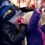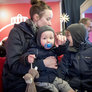 Vagtskiftet ved Marselisborg Slot skærtorsdag kl. 12 tiltrak mange fremmødte, mens politiets indsatsleder undervejs tog sig tid til at besvare spørgsmål fra en nysgerrig dreng.