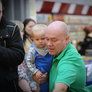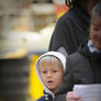 Vagtskiftet ved Marselisborg Slot skærtorsdag kl. 12 tiltrak mange fremmødte, mens politiets indsatsleder undervejs tog sig tid til at besvare spørgsmål fra en nysgerrig dreng.