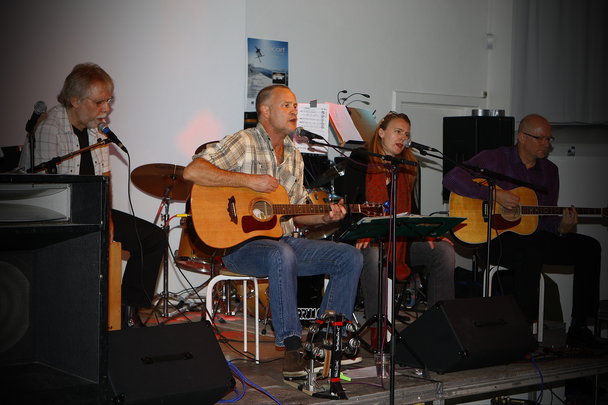Aftenens orkesterbestod af: Carsten Albretsen: Akustiske 6 og 12 str guitarer; Jette Sørensen: Vokal og slagtøj; Orla Trads: Cajon og kor;