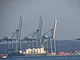 Der er en flot udsigten til kranerne og byggeriet på havnen.