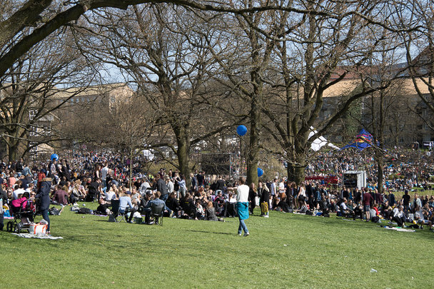 Kæmpefest og stemning i Universitetsparken på en solfyldt forårsdag.