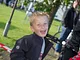 Vagtskiftet ved Marselisborg Slot skærtorsdag kl. 12 tiltrak mange fremmødte, mens politiets indsatsleder undervejs tog sig tid til at besvare spørgsmål fra en nysgerrig dreng.