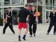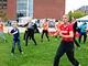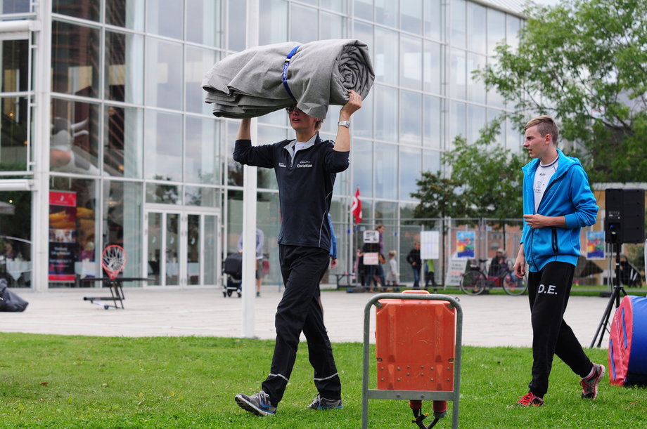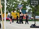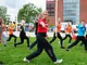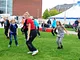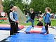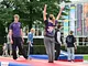 DGI idræt og leg var på besøg på denne fredag i festugen foran musikhuset. Her kunne børnene få lov til at hoppe, springe og snurre rundt, samt lære at danse. Der var også mulighed for at spille basket og lave bål på spejdermaner.