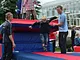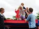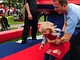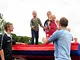 Vagtskiftet ved Marselisborg Slot skærtorsdag kl. 12 tiltrak mange fremmødte, mens politiets indsatsleder undervejs tog sig tid til at besvare spørgsmål fra en nysgerrig dreng.