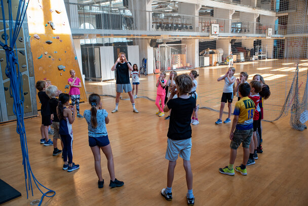 I denne uge kunne elever fra 1. - 5. klasse prøve kræfter med DGI´s 16 meter høje klatrevæg. Kyndig instruktør hjalp børnene med at betige højderne. Trods det gode vejr, havde godt en snes børn fundet vej til den store sal hos DGI, for at prøve udfordringerne.