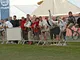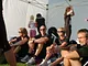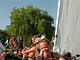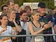 Vagtskiftet ved Marselisborg Slot skærtorsdag kl. 12 tiltrak mange fremmødte, mens politiets indsatsleder undervejs tog sig tid til at besvare spørgsmål fra en nysgerrig dreng.