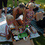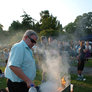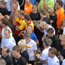 Vagtskiftet ved Marselisborg Slot skærtorsdag kl. 12 tiltrak mange fremmødte, mens politiets indsatsleder undervejs tog sig tid til at besvare spørgsmål fra en nysgerrig dreng.