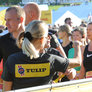 Vagtskiftet ved Marselisborg Slot skærtorsdag kl. 12 tiltrak mange fremmødte, mens politiets indsatsleder undervejs tog sig tid til at besvare spørgsmål fra en nysgerrig dreng.