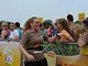Vagtskiftet ved Marselisborg Slot skærtorsdag kl. 12 tiltrak mange fremmødte, mens politiets indsatsleder undervejs tog sig tid til at besvare spørgsmål fra en nysgerrig dreng.
