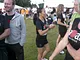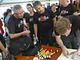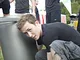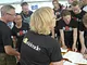 Vagtskiftet ved Marselisborg Slot skærtorsdag kl. 12 tiltrak mange fremmødte, mens politiets indsatsleder undervejs tog sig tid til at besvare spørgsmål fra en nysgerrig dreng.