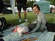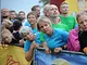 Vagtskiftet ved Marselisborg Slot skærtorsdag kl. 12 tiltrak mange fremmødte, mens politiets indsatsleder undervejs tog sig tid til at besvare spørgsmål fra en nysgerrig dreng.