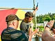 Vagtskiftet ved Marselisborg Slot skærtorsdag kl. 12 tiltrak mange fremmødte, mens politiets indsatsleder undervejs tog sig tid til at besvare spørgsmål fra en nysgerrig dreng.