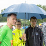 Vagtskiftet ved Marselisborg Slot skærtorsdag kl. 12 tiltrak mange fremmødte, mens politiets indsatsleder undervejs tog sig tid til at besvare spørgsmål fra en nysgerrig dreng.