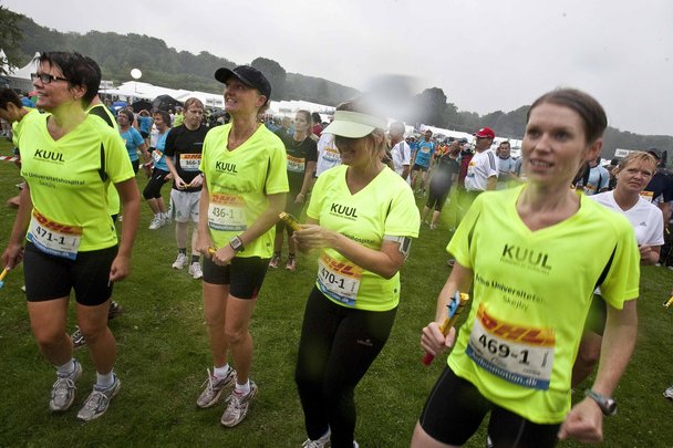 Omkring 12000 trodsede vejrguderne og stillede til start på DHL-stafettens første dag. De blev våde, meget våde, men tog strabadserne med godt humør.