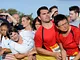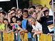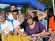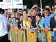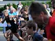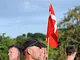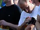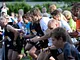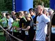 Vagtskiftet ved Marselisborg Slot skærtorsdag kl. 12 tiltrak mange fremmødte, mens politiets indsatsleder undervejs tog sig tid til at besvare spørgsmål fra en nysgerrig dreng.