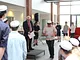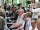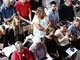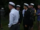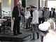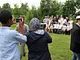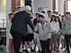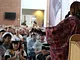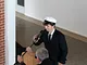 Vagtskiftet ved Marselisborg Slot skærtorsdag kl. 12 tiltrak mange fremmødte, mens politiets indsatsleder undervejs tog sig tid til at besvare spørgsmål fra en nysgerrig dreng.