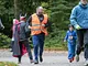 Vagtskiftet ved Marselisborg Slot skærtorsdag kl. 12 tiltrak mange fremmødte, mens politiets indsatsleder undervejs tog sig tid til at besvare spørgsmål fra en nysgerrig dreng.