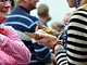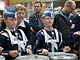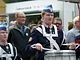 Vagtskiftet ved Marselisborg Slot skærtorsdag kl. 12 tiltrak mange fremmødte, mens politiets indsatsleder undervejs tog sig tid til at besvare spørgsmål fra en nysgerrig dreng.