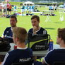 Vagtskiftet ved Marselisborg Slot skærtorsdag kl. 12 tiltrak mange fremmødte, mens politiets indsatsleder undervejs tog sig tid til at besvare spørgsmål fra en nysgerrig dreng.