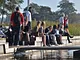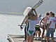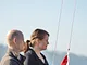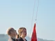 Vagtskiftet ved Marselisborg Slot skærtorsdag kl. 12 tiltrak mange fremmødte, mens politiets indsatsleder undervejs tog sig tid til at besvare spørgsmål fra en nysgerrig dreng.