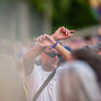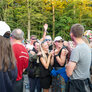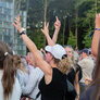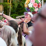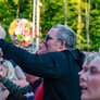 Vagtskiftet ved Marselisborg Slot skærtorsdag kl. 12 tiltrak mange fremmødte, mens politiets indsatsleder undervejs tog sig tid til at besvare spørgsmål fra en nysgerrig dreng.