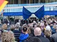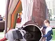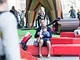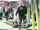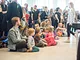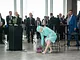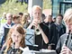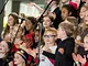 Vagtskiftet ved Marselisborg Slot skærtorsdag kl. 12 tiltrak mange fremmødte, mens politiets indsatsleder undervejs tog sig tid til at besvare spørgsmål fra en nysgerrig dreng.