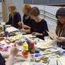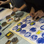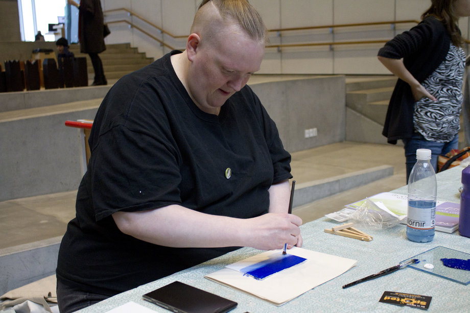 Der blev lavet håndtryk på papir ark i alverdens mønstrer og farver til den helt store guldmedalje.