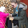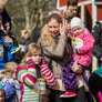 Vagtskiftet ved Marselisborg Slot skærtorsdag kl. 12 tiltrak mange fremmødte, mens politiets indsatsleder undervejs tog sig tid til at besvare spørgsmål fra en nysgerrig dreng.