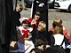Vagtskiftet ved Marselisborg Slot skærtorsdag kl. 12 tiltrak mange fremmødte, mens politiets indsatsleder undervejs tog sig tid til at besvare spørgsmål fra en nysgerrig dreng.