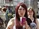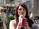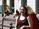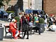 Dragen er stadig midtpunkt på Store Torv, og en masse mennesker bevæger sig omkring og nær den.