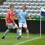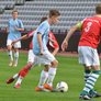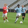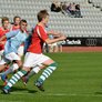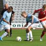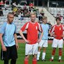 Chokstart. Blot efter 10 sekunder lykkes det skæringskole at komme foran 1-0 over Katrinebjergskolen i drengefinalen på NRGi park. Katrinebjergskolen svarede igen og kom op på 1-1. Derefter skiftede de til at score indtil Katrinebjergskolen trak fra og vandt 6-3.